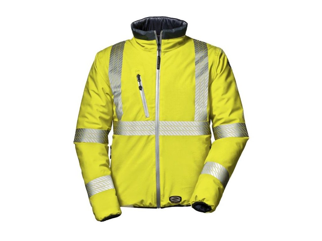 (reflexní pruhy na hrudi, zádech a rukávech - EN 20471 - třída 3), kapsy na zip, elastické zakončení na spodním lemu a koncích rukávů