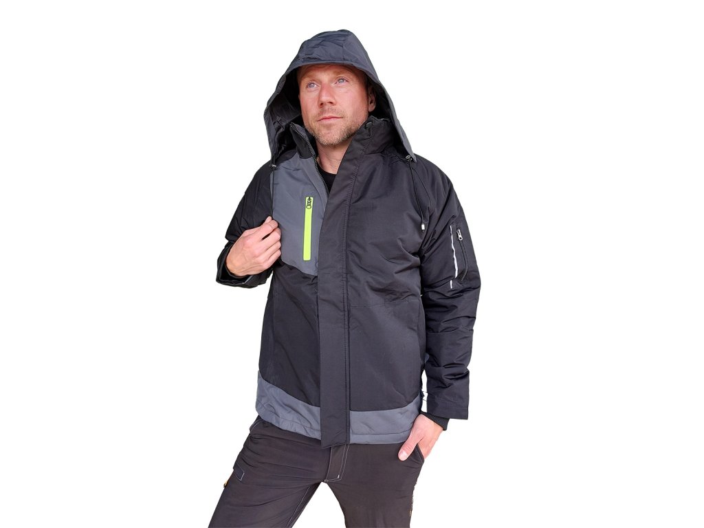 kapuce se stahováním a dodatečným zapínáním na suchý zip pro lepší ochranu hlavy před chladem,