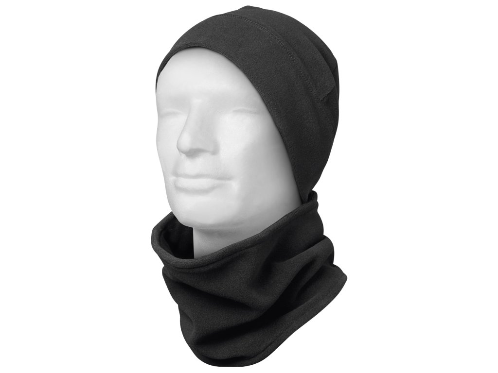 set: černá čepice a nákrčník z fleecu s protižmolkovou úpravou,