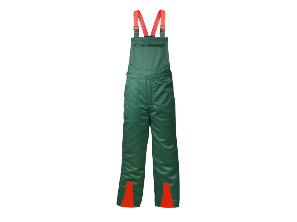protipořezové kalhoty s náprsekou - elastické šle, náprsní kapsa s klopou, protipořezová třída 1, 1:20 m/s,