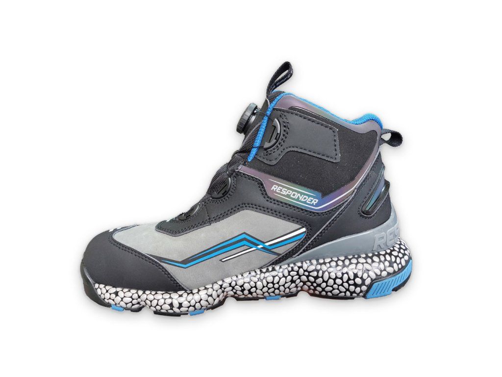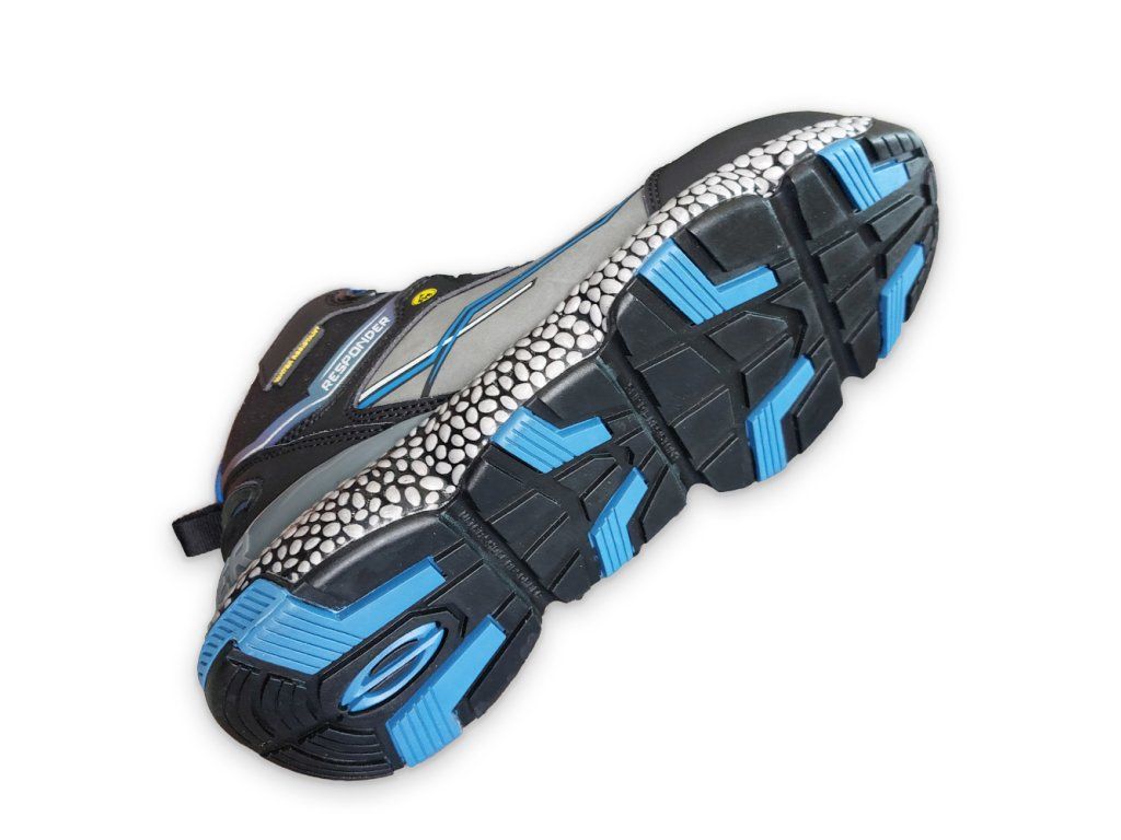 E-TPU Responder/pryžová podešev poskytuje vynikající elasticitu a tlumící efekt. Gumová podešev díky svým hlubokým podélným drážkám zvýrazňuje pružnost podešve a zajišťuje vynikající přilnavost na všech typech povrchů.