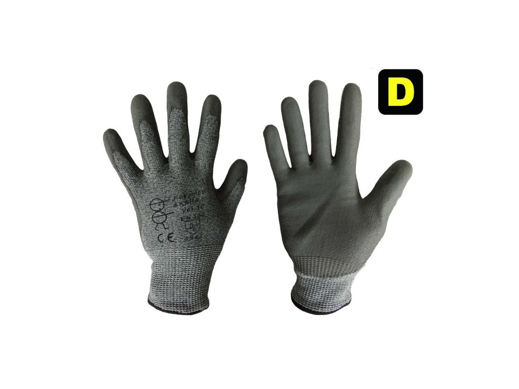 bezešvé protiřezné rukavice, odolnost proti řezu stupeň D,