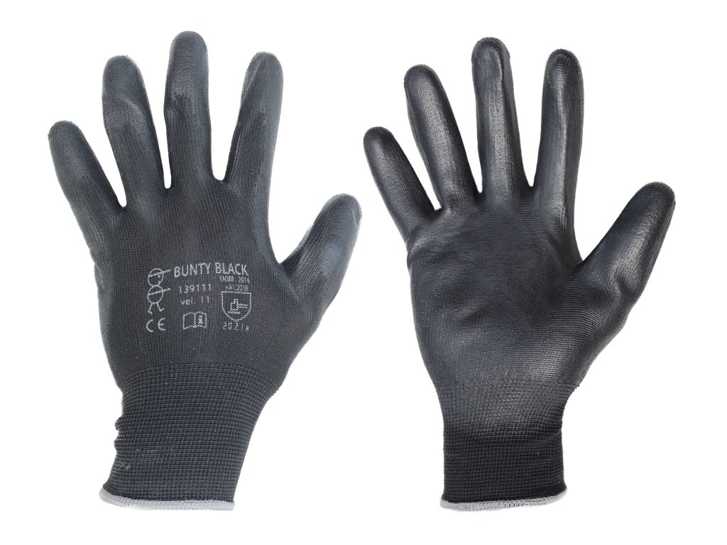 bezešvé rukavice ze 100% polyesteru, polomáčené v polyuretanu