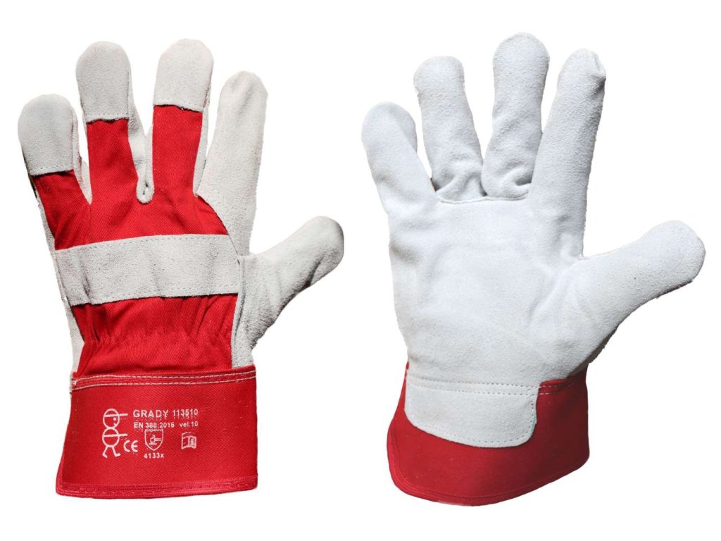 dlaň, palec a špičky prstů ze štípené hovězinové usně,