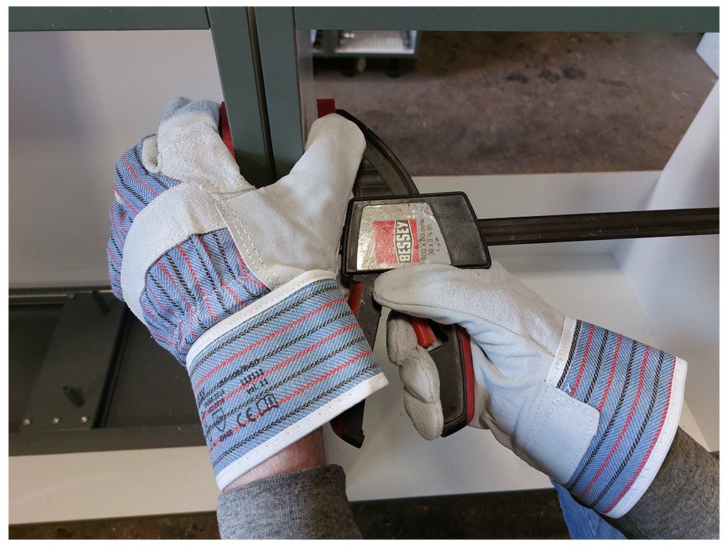 dlaň, palec a špičky prstů ze štípené hovězinové usně,