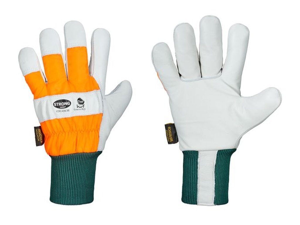 kombinované rukavice zateplené z hydrofobní hovězinové lícové usně a reflexní oranžové pevné tkaniny,