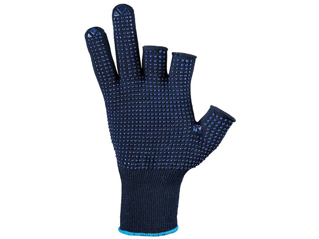 bezešvé úpletové rukavice s terčíky v dlaňové části, chybějící tři články prstů