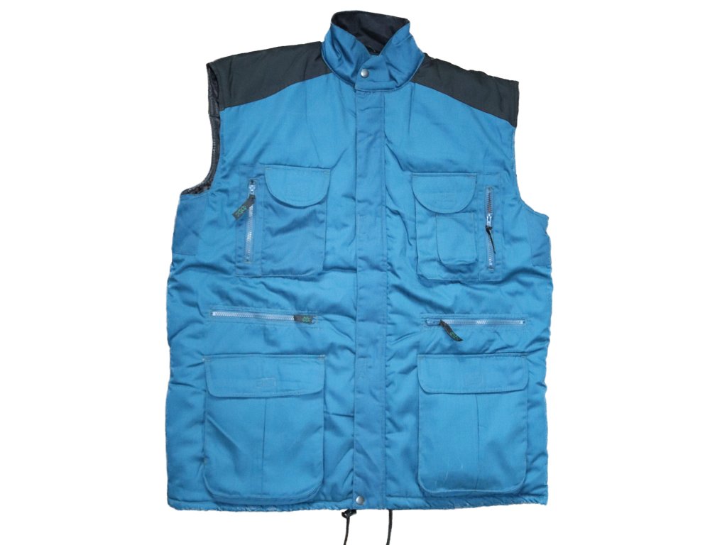 celoroční víceúčelová pracovní vesta s velkým množstvím kapes, silně zateplená, stahování na spodním okraji